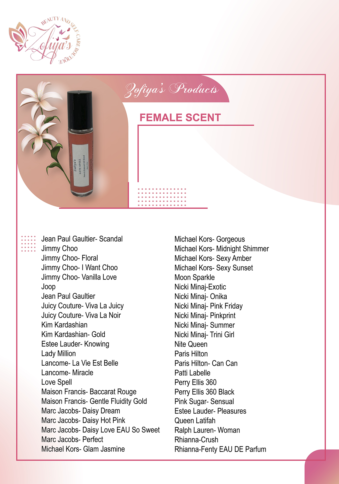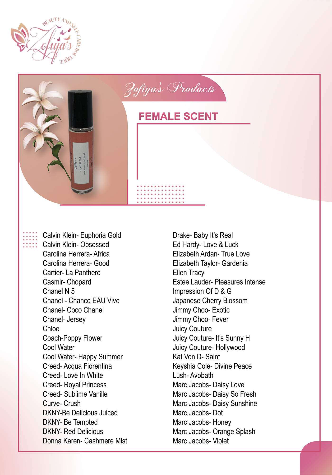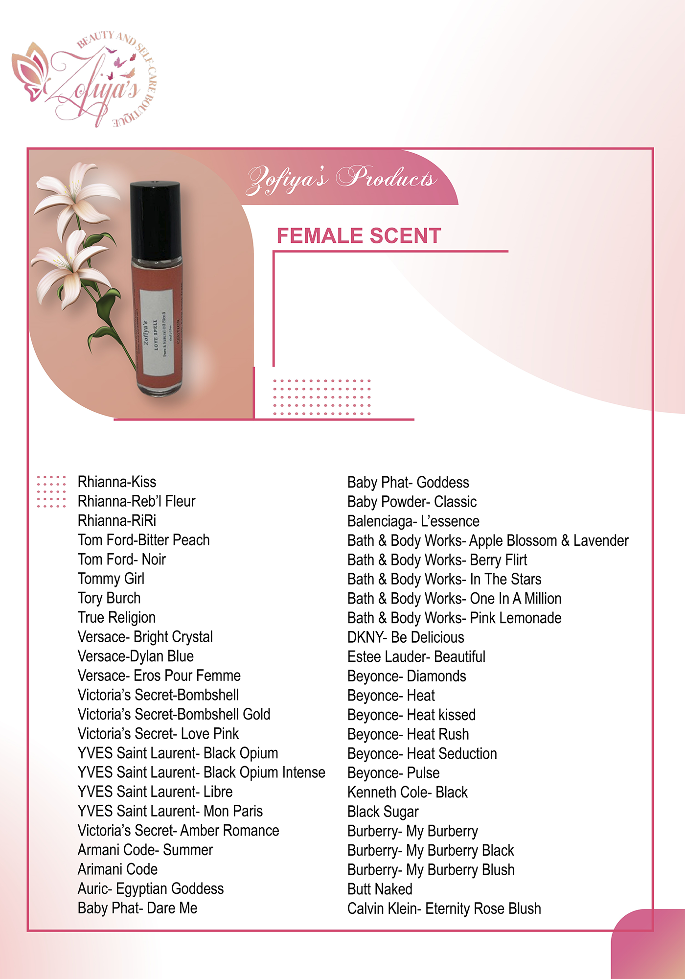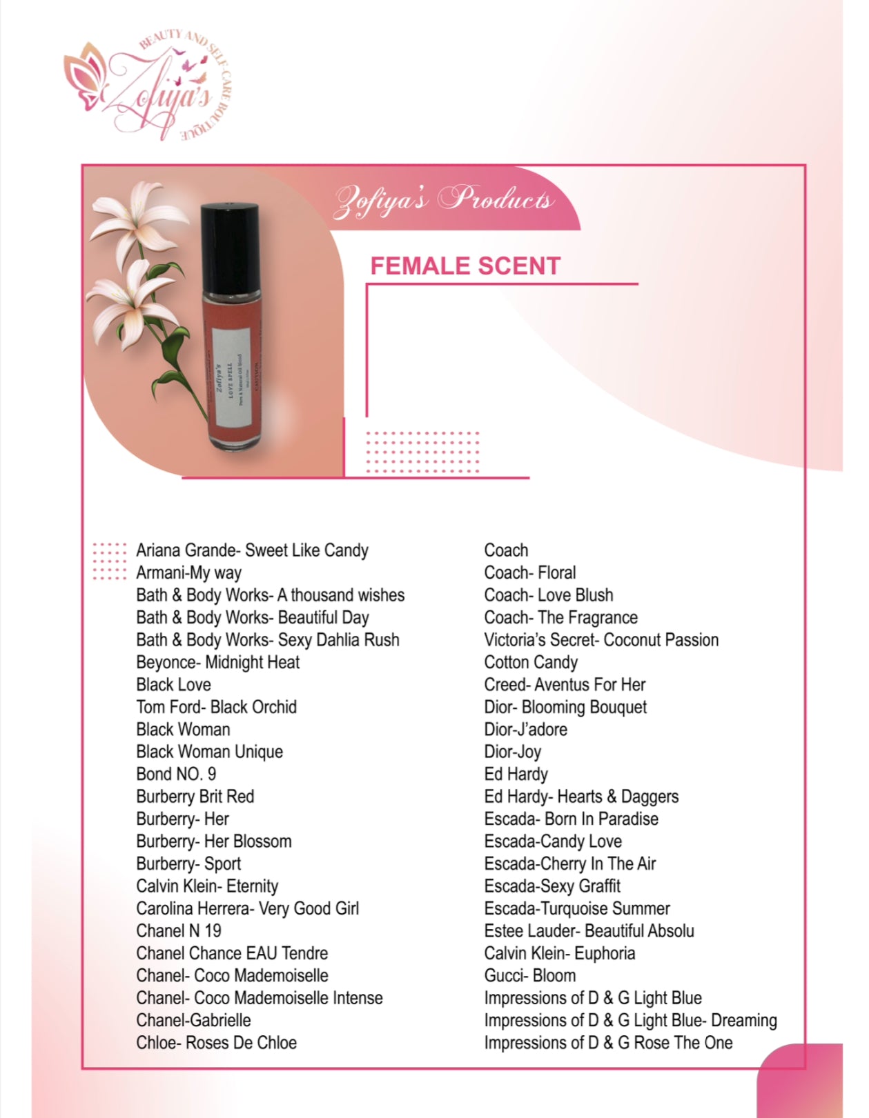 - Designer Inspired Perfume Oil Female Scents (A-B)